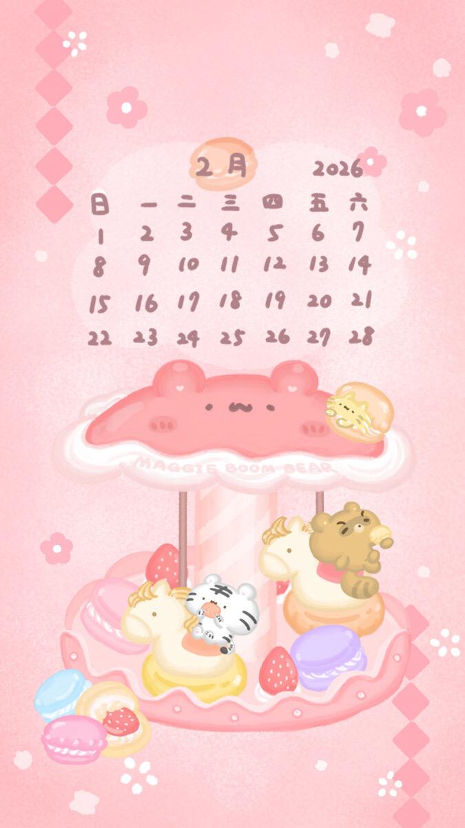 這是2月桌布,莓好圓馬🎠🍓🍬